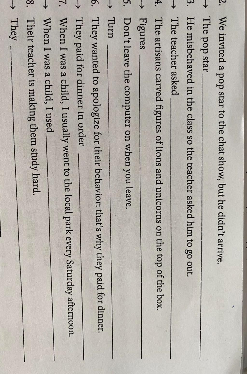 `3.` The teacher asked him to go out because he misbehaved in the class.