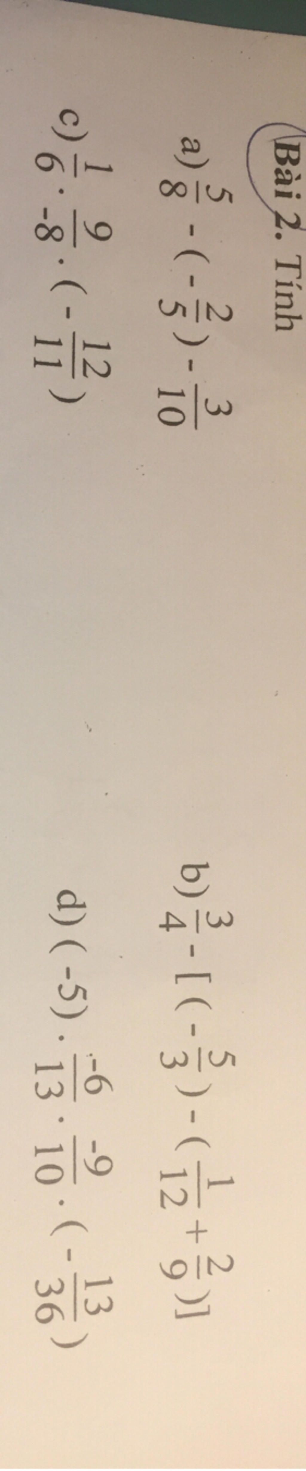 `• 3/4 - [(- 5/3) - (1/12 + 2/9)]= 3/4 + 5/3 + 1/12 - 2/9= 41/18`