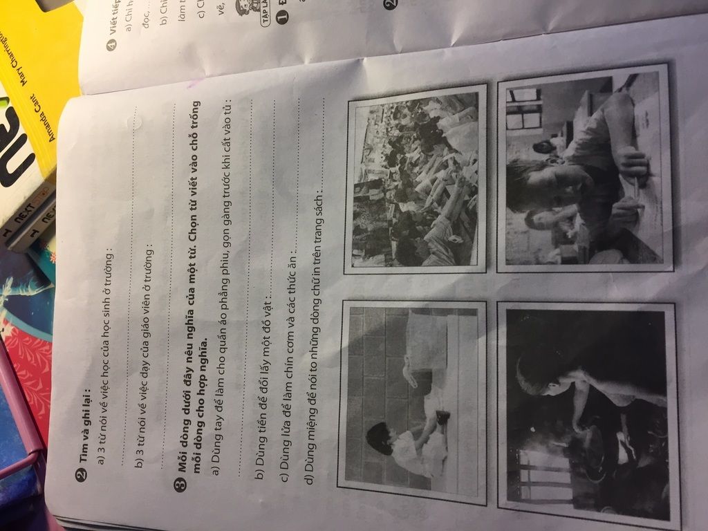 b) giảng bài, viết bảng, nhắc nhở (học sinh)