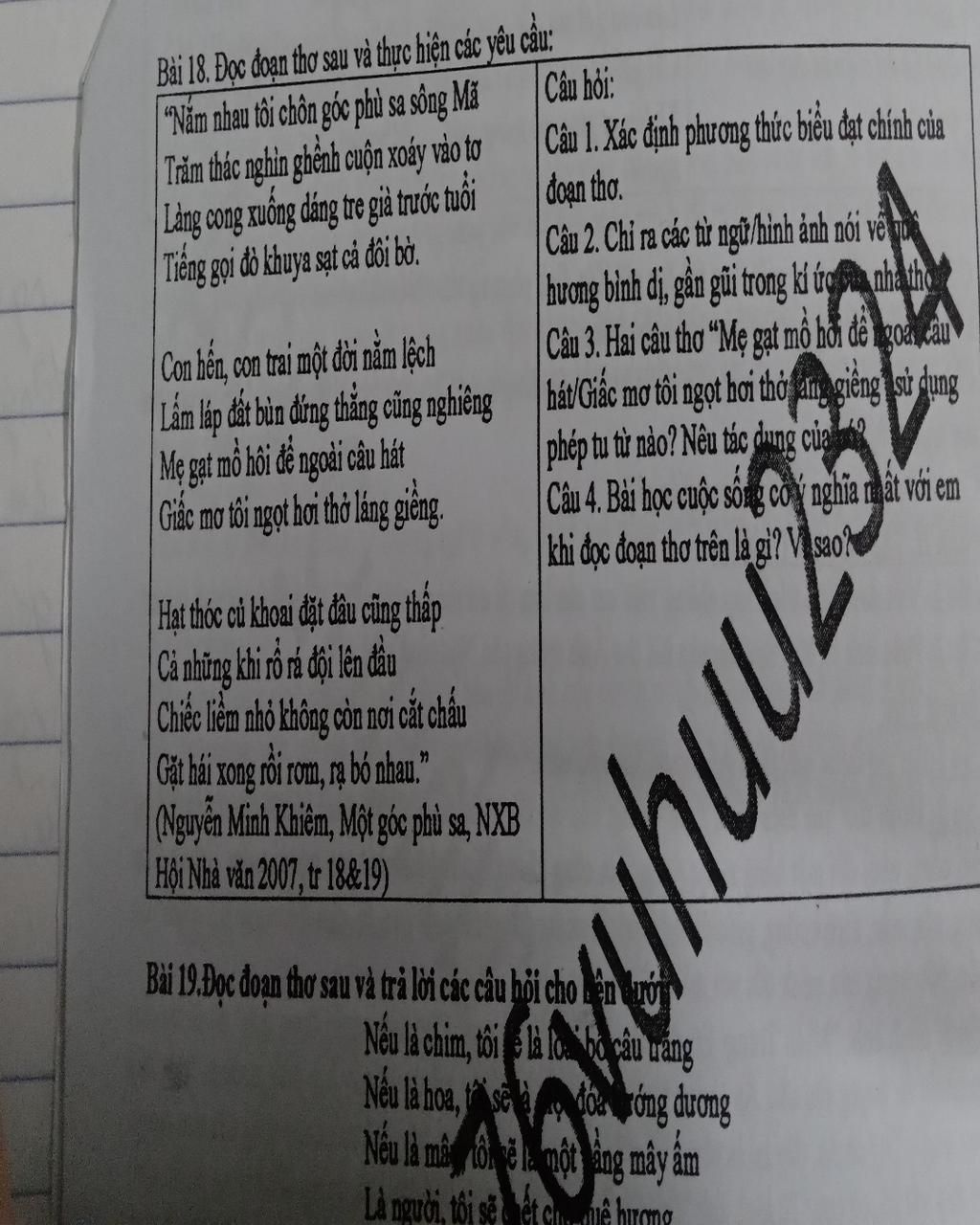 Bài 18. Đọc đoạn thơ sau và thực hiện các yêu cầu: