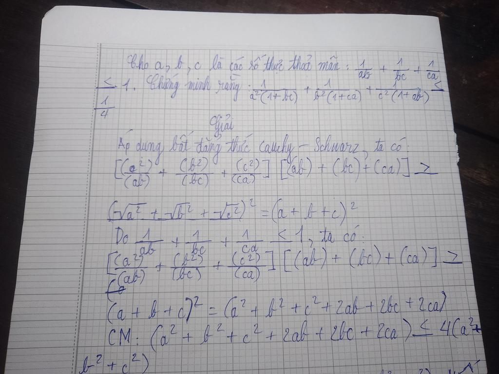 `=> 1/[a^2(1 + bc)] + 1/[b^2(1 + ca)] + 1/[c^2(1 + ab)] `