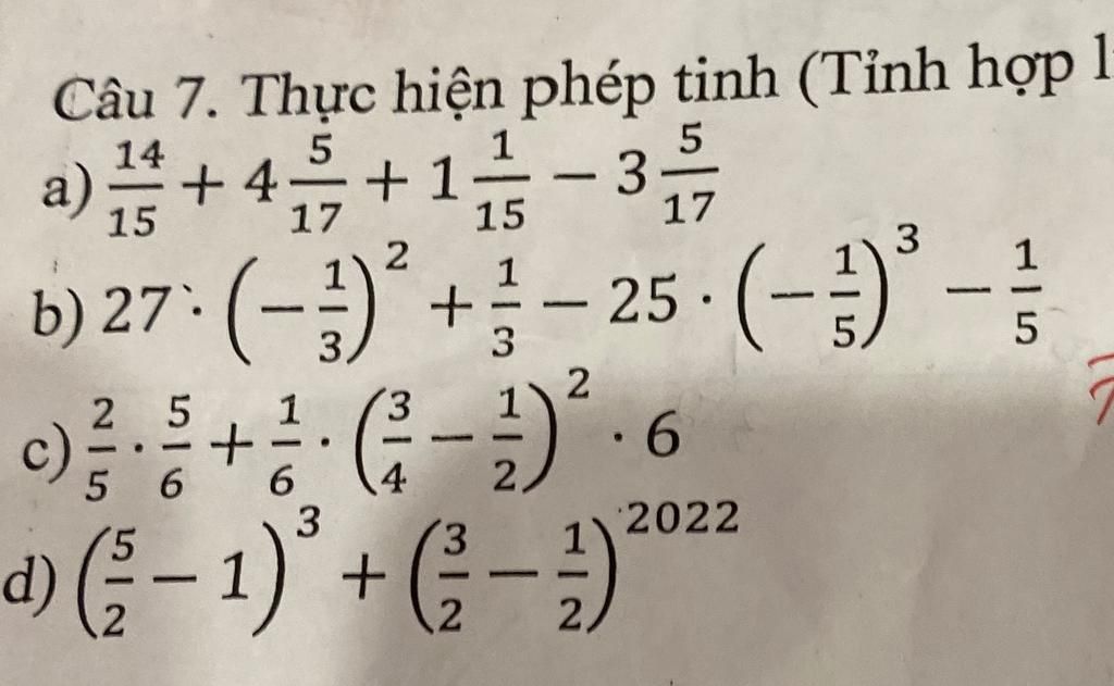 `b) 27 . ( -1/3)^2 + 1/3 - 25 . ( -1/5)^3 - 1/5`