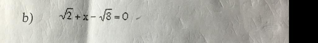 b) $\sqrt[]{2}$+x- $\sqrt[]{8}$ = 0