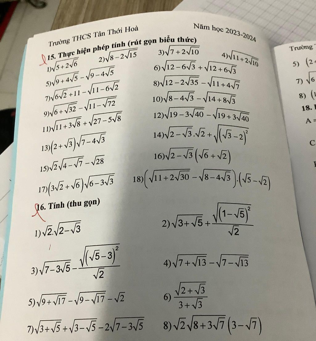 | 15. Thực hiện phép tính (rút gọn biểu thức)