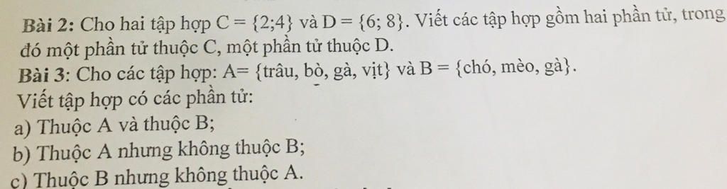 Bài `2: { 2; 6 }; { 2; 8 }; { 4; 6 }; { 4; 8 }`