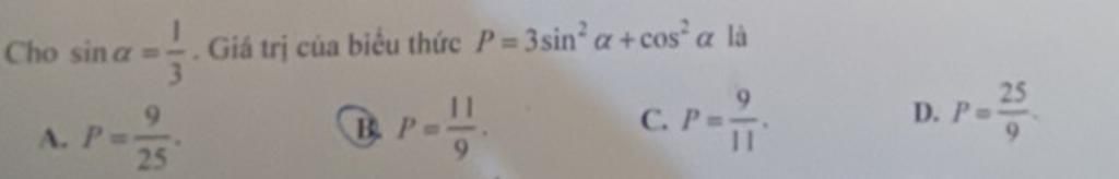 Thay `sin ∝ = 1/3` vào `P`