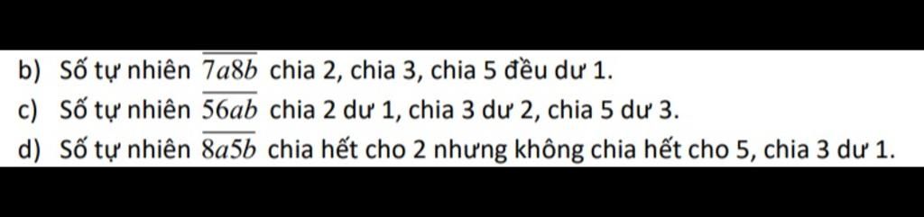 c) Số tự nhiên 56ab chia 2 dư 1, chia 3 dư 2, chia 5 dư 3.