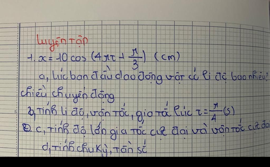 \(x = 10\cos \left( {4\pi .\dfrac{\pi }{4} + \dfrac{\pi }{3}} \right) = - 0,79\left( {cm} \right)\)