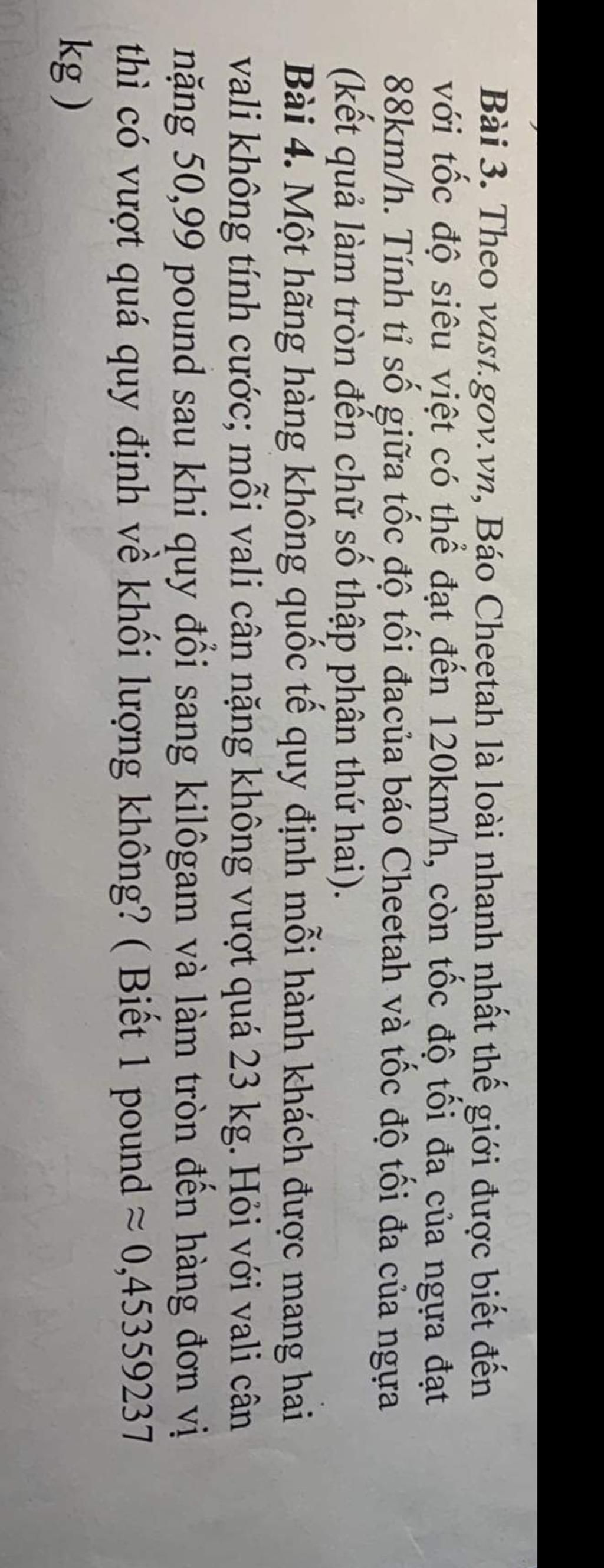 tỉ số giữa tốc độ tối đa của báo Cheetah và tốc độ tối đa của ngựa là :