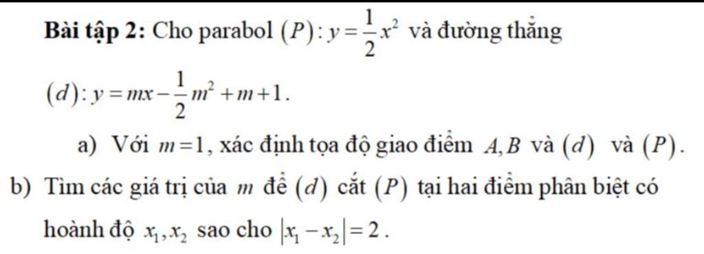 b) Tìm các giá trị của m để (d) cắt (P) tại hai điểm phân biệt có