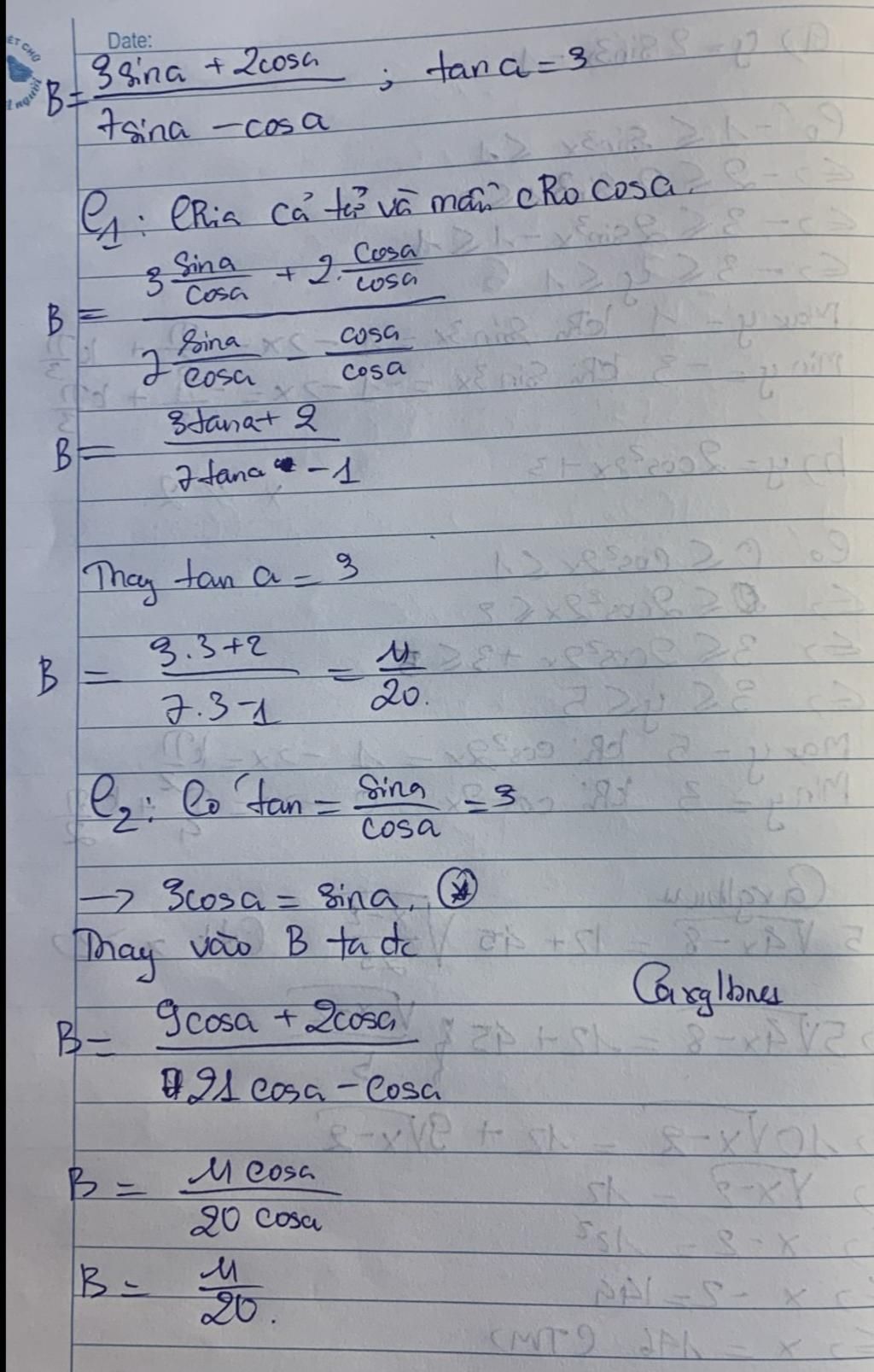 mà cho mình hỏi nếu mình tìm cos a theo hệ thức cos^2 a + sin^2 a = 1 có tính là cách 2 ko