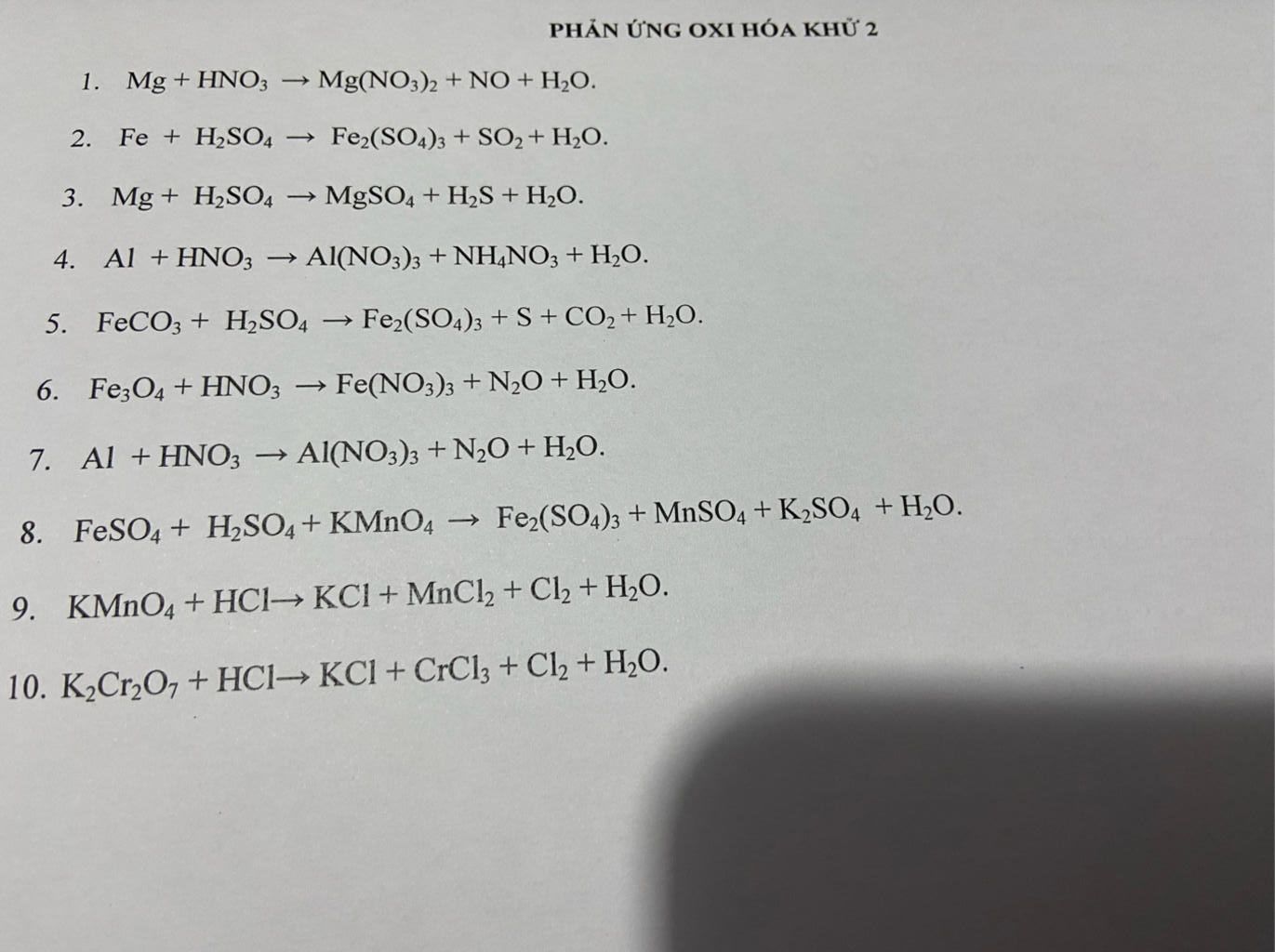 `7.` `8Al+30HNO_3->8Al(NO_3)_3+3N_2O+15H_2O`