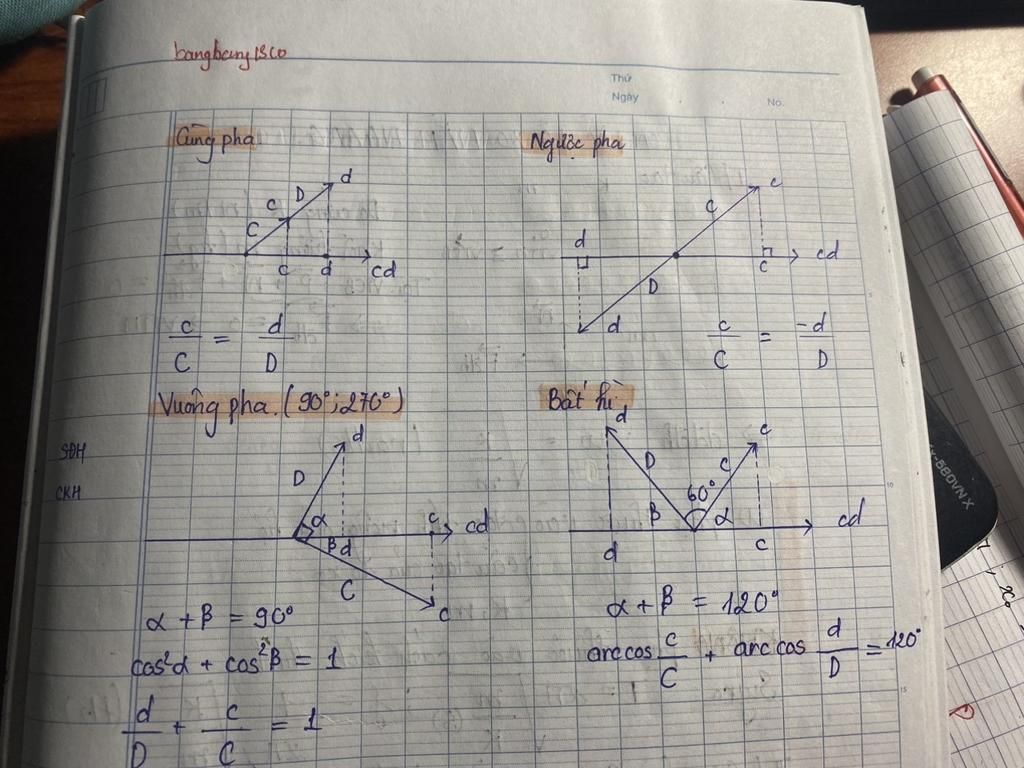 Hai dao động ngược pha khi 2 pha đó có chung gốc và hai mũi tên có hướng ngược nhau.