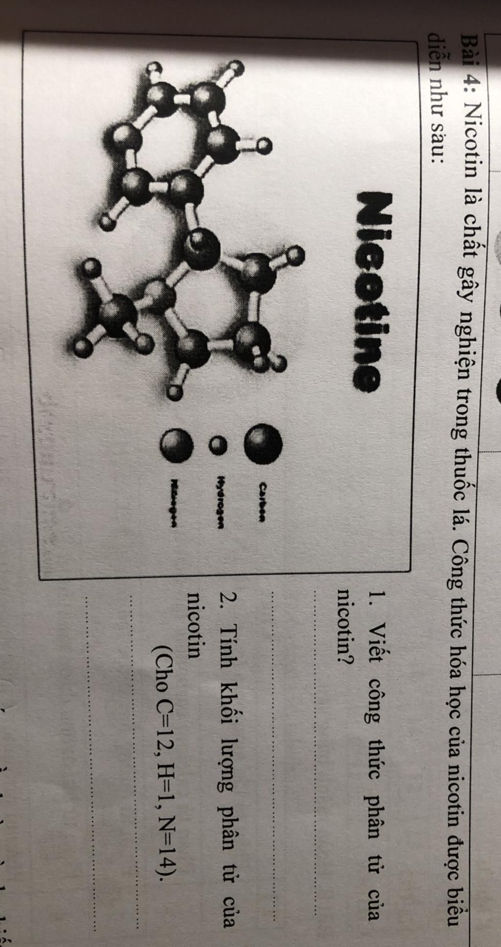 Khối lượng phân tử của nicotine `=12*10+1*14+14*2=162(a m u)`