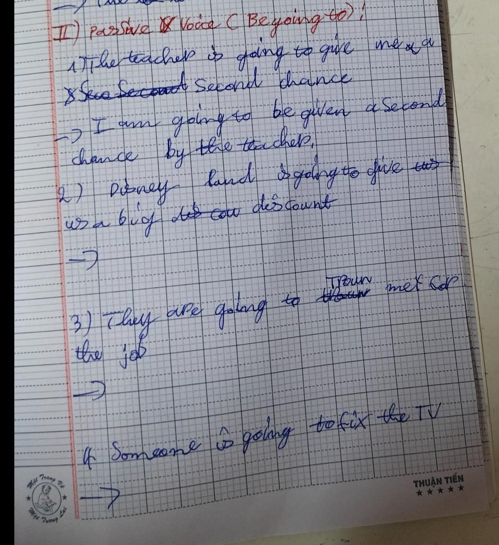 `*` Bị động: S `+` am/is/are `+` going to be `+` $P_{II}$ `+` (By O)