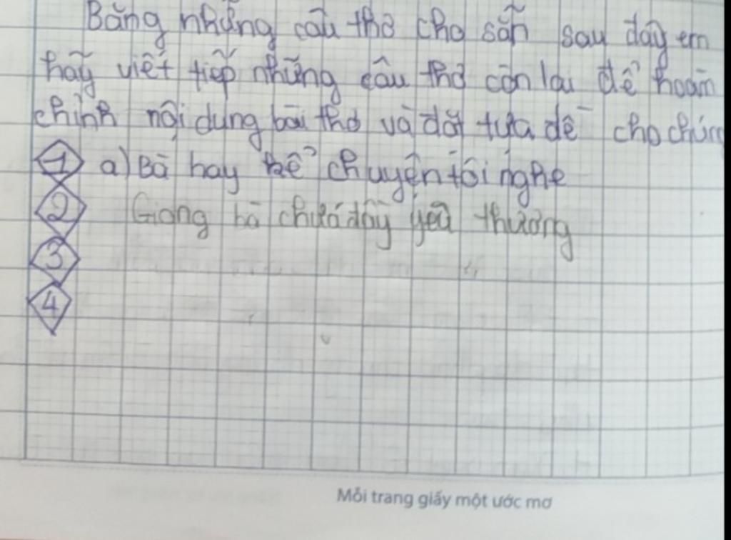 hãy viết tiếp những câu thơ còn lại để hoàn