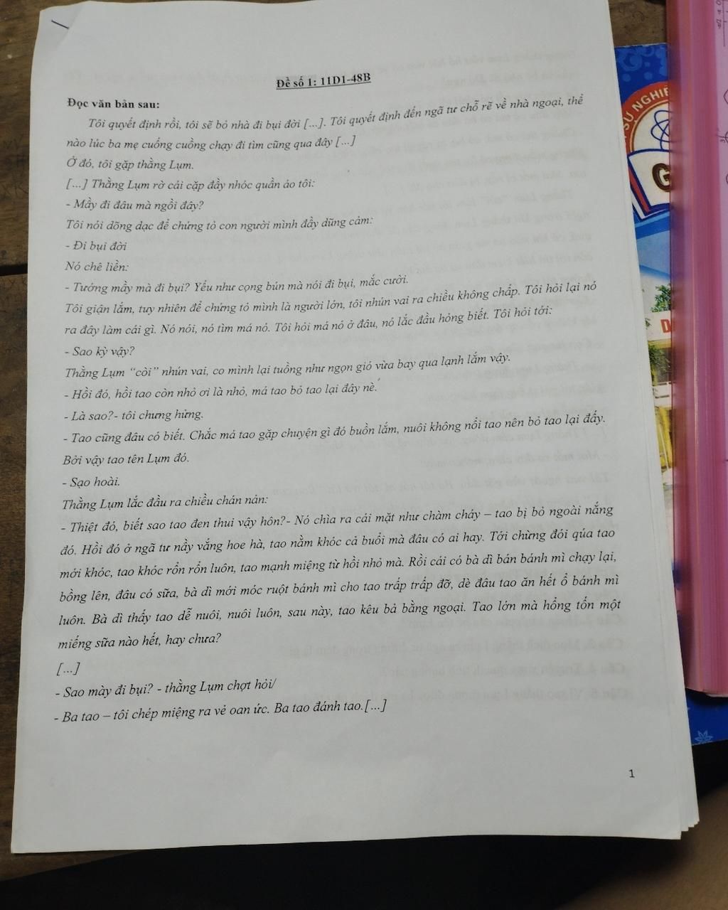Giọng thằng Lụm vừa hồ hởi vừa có vẻ ganh tị. Mày sướng thiệt (trời, bị cánh mà sướng nỗi gì). Vậy mà còn bỏ nhà đi. Đồ ngu!