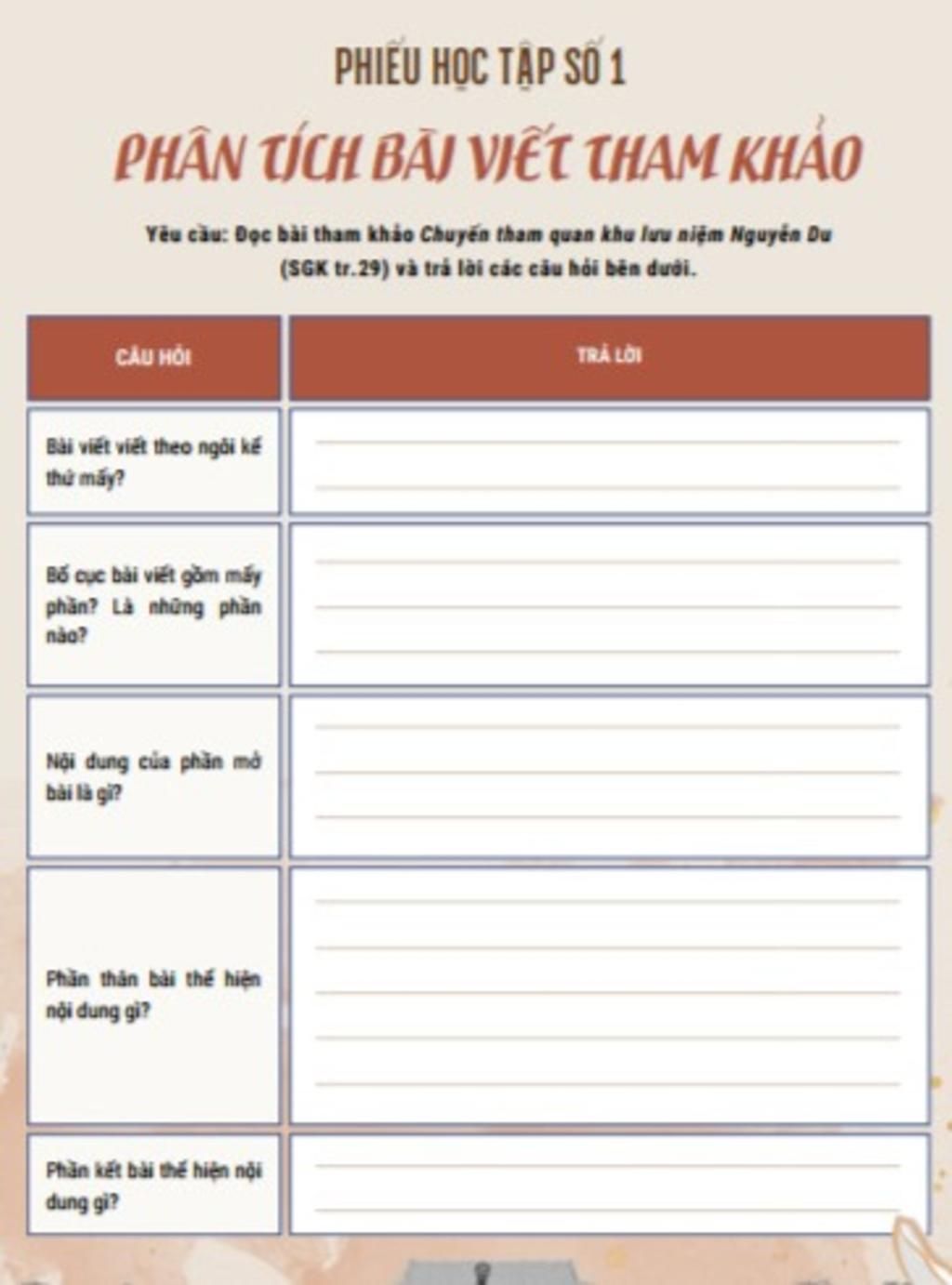 Yêu cầu: Đọc bài tham khảo Chuyến tham quan khu lưu niệm Nguyễn Du