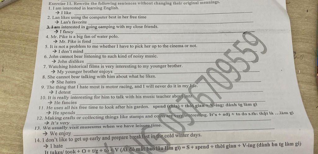 Exercise 11. Rewrite the following sentences without changing their original meanings.