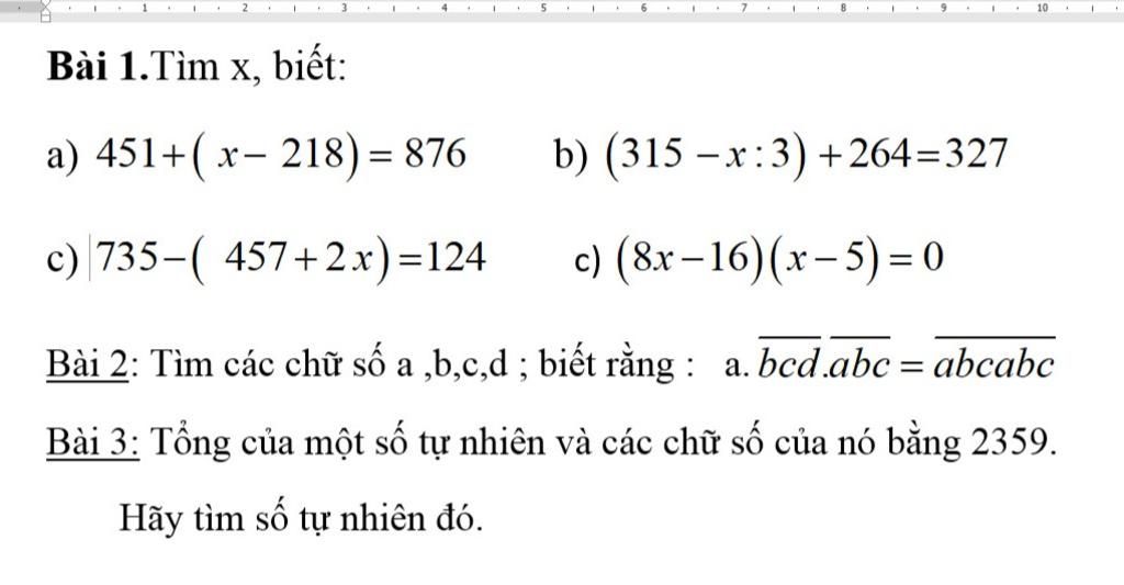 Bài 2: Tìm các chữ số a ,b,c,d ; biết rằng : a. bed.abc = abcabe