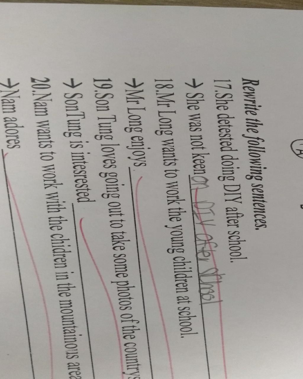 `17.` She was not keen on doing DIY after school.