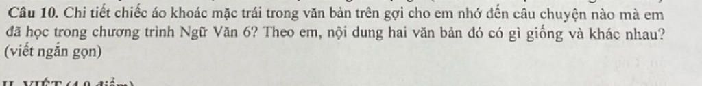 Câu 10. Chi tiết chiếc áo khoác mặc trái trong văn bản trên gợi cho em nhớ đến câu chuyện nào mà em
