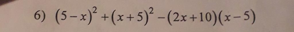 `6) (5-x)^2 + (x+5)^2 - (2x+10)(x-5)`