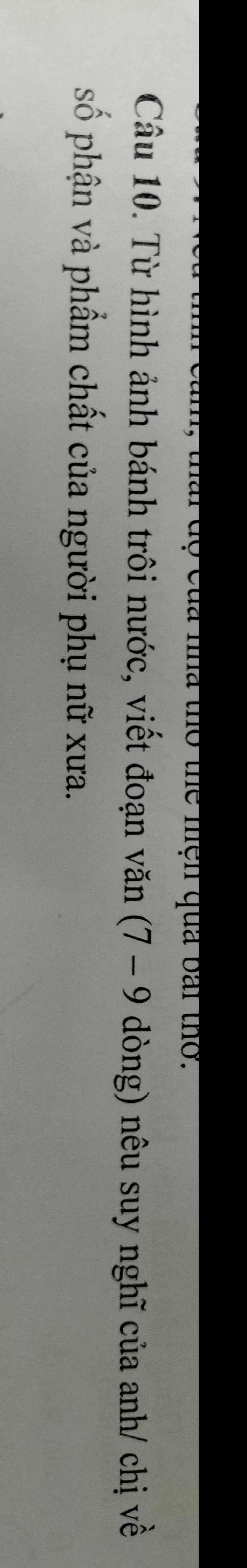 Vẻ đẹp của người phụ xưa đó là: "trắng", "trò" - vẻ đẹp phúc hậu, hiền từ. Tuy vậy nhưng lại mạng một số phận chẳng khác gì những tấm lụa đào, hạt mưa sa,… người con gái trong xã hội cũ không được tự quyết định số phận, hạnh phúc của mình. Khi ở nhà họ phụ thuộc vào cha mẹ, cha mẹ đặt đâu họ phải ngồi ở đó, đến lúc đã yên bề gia thất số phận của họ lại tiếp tục bị phụ thuộc vào người chồng. Những người phụ nữ này thật nhỏ bé và đáng thương, cuộc đời chìm nổi với biết bao sóng gió, hạnh phúc của bản thân không được tự mình quyết định. Mặc dù cuộc sống không được suôn sẻ, luôn gặp phải những sóng gió nhưng những người phụ nữ ấy lại mang trong mình những phẩm chất hết sức tốt đẹp. Họ là những người phụ nữ luôn mang trong mình tấm lòng trong trắng, tốt đẹp, dù gặp cảnh ngộ nào cũng vẫn giữ được tấm lòng son sắt, thủy chung. Tác phẩm Bánh trôi mước đã sử dụng hình tượng bánh trôi nước để thể hiện sự trân trọng, ngợi ca vẻ đẹp của người phụ nữ không chỉ ở phẩm chất mà ngay cả vẻ đẹp bề ngoài. Đồng thời lời thơ tha thiết cũng là tiếng nói cảm thông với số phận chìm nổi, bị lệ thuộc của ngườ icon gái. Qua đây còn lên án xã hội cũ đã đè nén, áp bức, tước bỏ quyền được lựa chọn cuộc sống, hạnh phúc của con người.