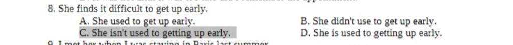 ` - ` Cô ấy thấy khó để dậy sớm ` = ` Cô ấy không quen dậy sớm