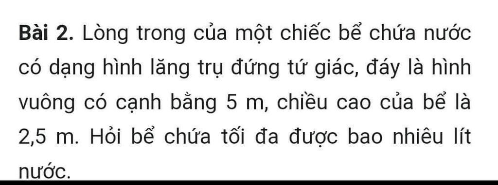 Vậy bể nước có thể chứa tối đa 62500 lít nước