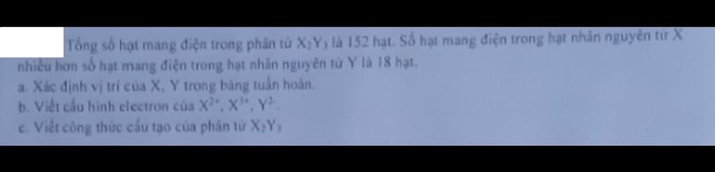 Tổng số hạt mang điện trong $X_2Y_3$ là $152$ nên ta có: $2p_X.2+2p_Y.3=152$