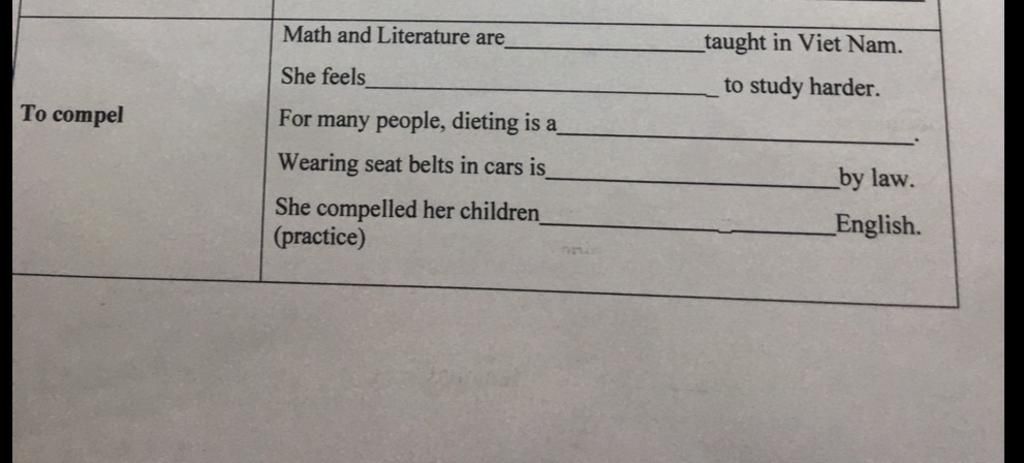 `-` Ta có: Compel sb to do sth `:` Ép buộc, khiến ai đó làm điều gì ...