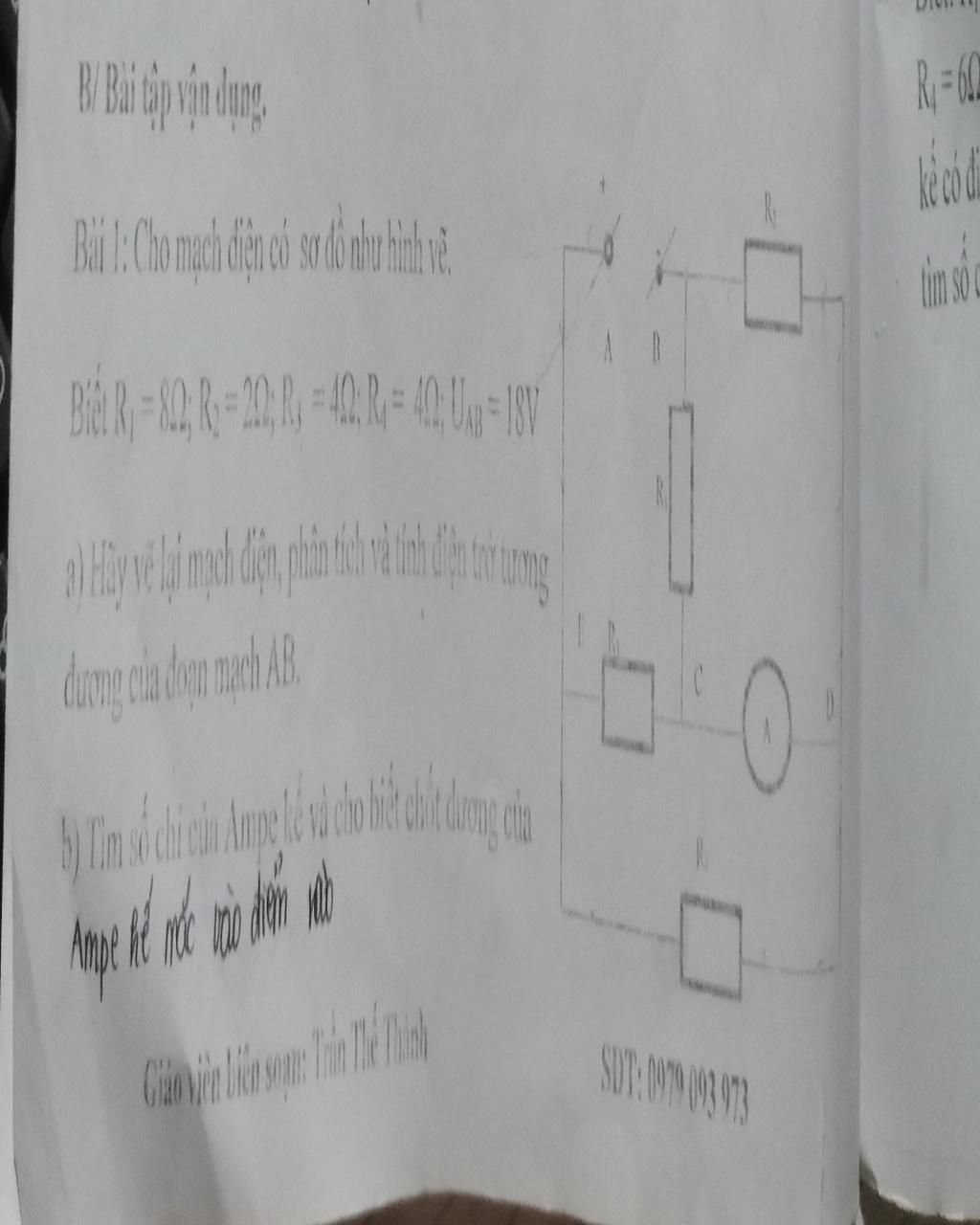 c, Nếu thay ampe kế bằng một vôn kế có điện trở vô cùng lớn.Hãy tính chỉ số của vôn kế và cho biết chốt dương của vôn kế mắc vào điểm nào. Giúp tớ với cảm ơn nhiều