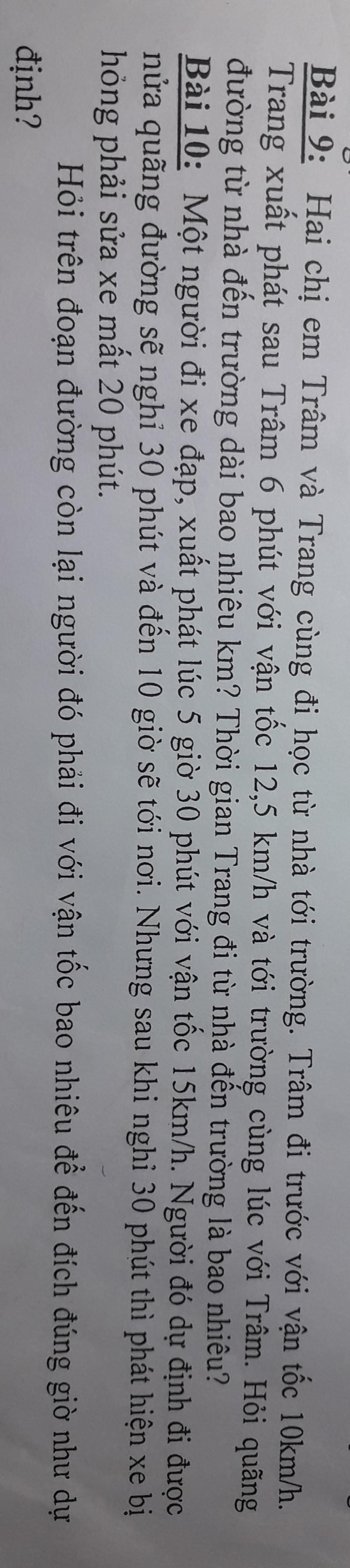 Bài 9: Hai chị em Trâm và Trang cùng đi học từ nhà tới trường. Trâm đi trước với vận tốc 10km/h.