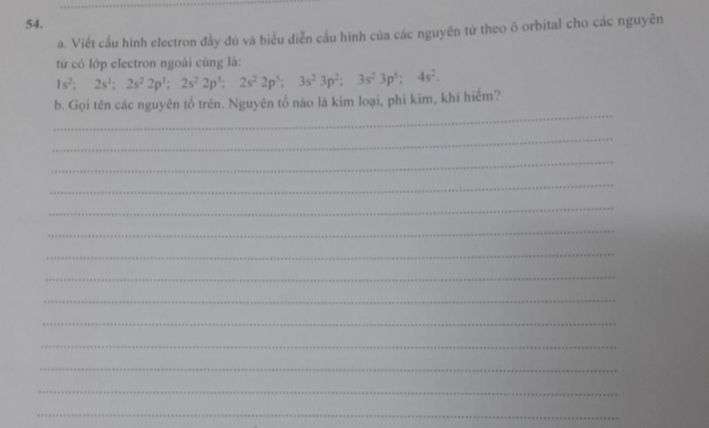 a. Viết cấu hình electron đầy đủ và biểu diễn cẩu hình của các nguyên tử theo ô orbital cho các nguyên