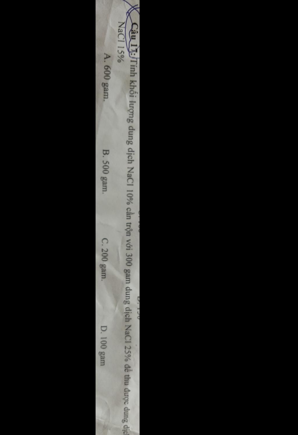 `=> C%_{dd NaCl sau} = {0,1x + 75}/{x + 300} . 100% = 15%`