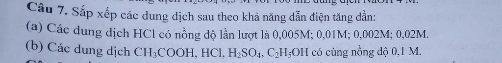 Vậy độ dẫn điện tăng dần: $HCl 0,002M < HCl 0,005M < HCl 0,01M < HCl 0,02M$