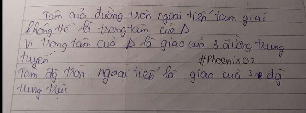 Tâm của đường tròn ngoại tiếp tam giác không là trọng tâm tam giác.