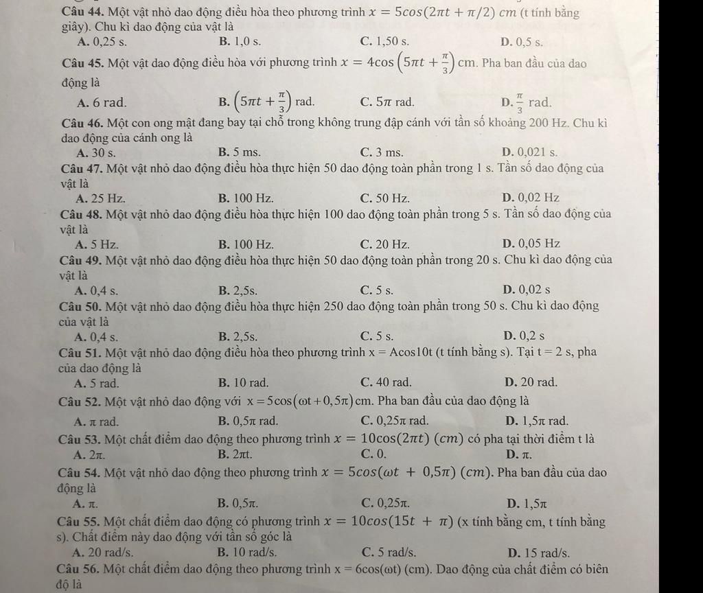 câu 56 hỏi biên độ mà?? đề không có đáp án nên ghi vậy thôi