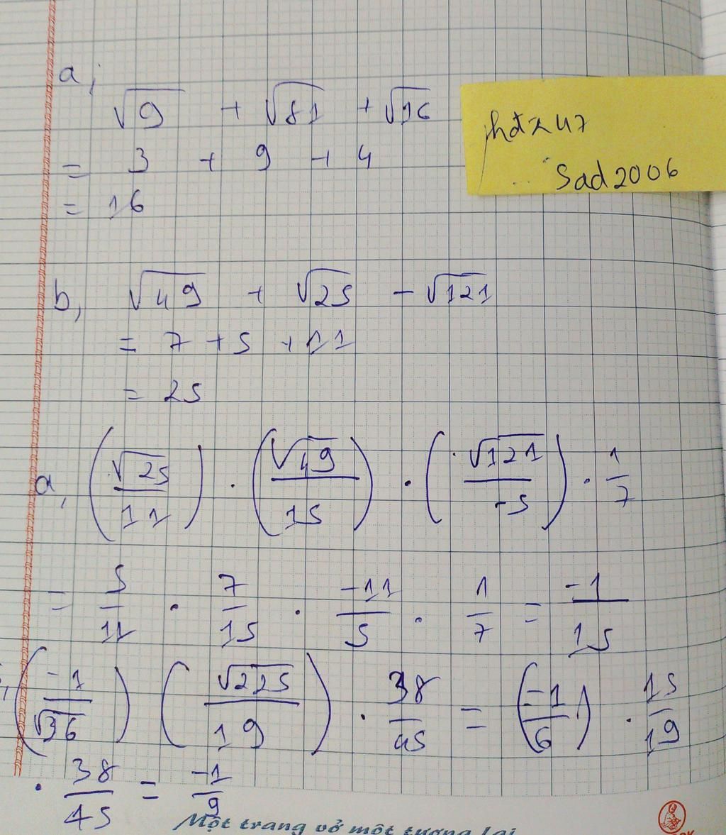 a, căn 9 + căn 81 + căn 16