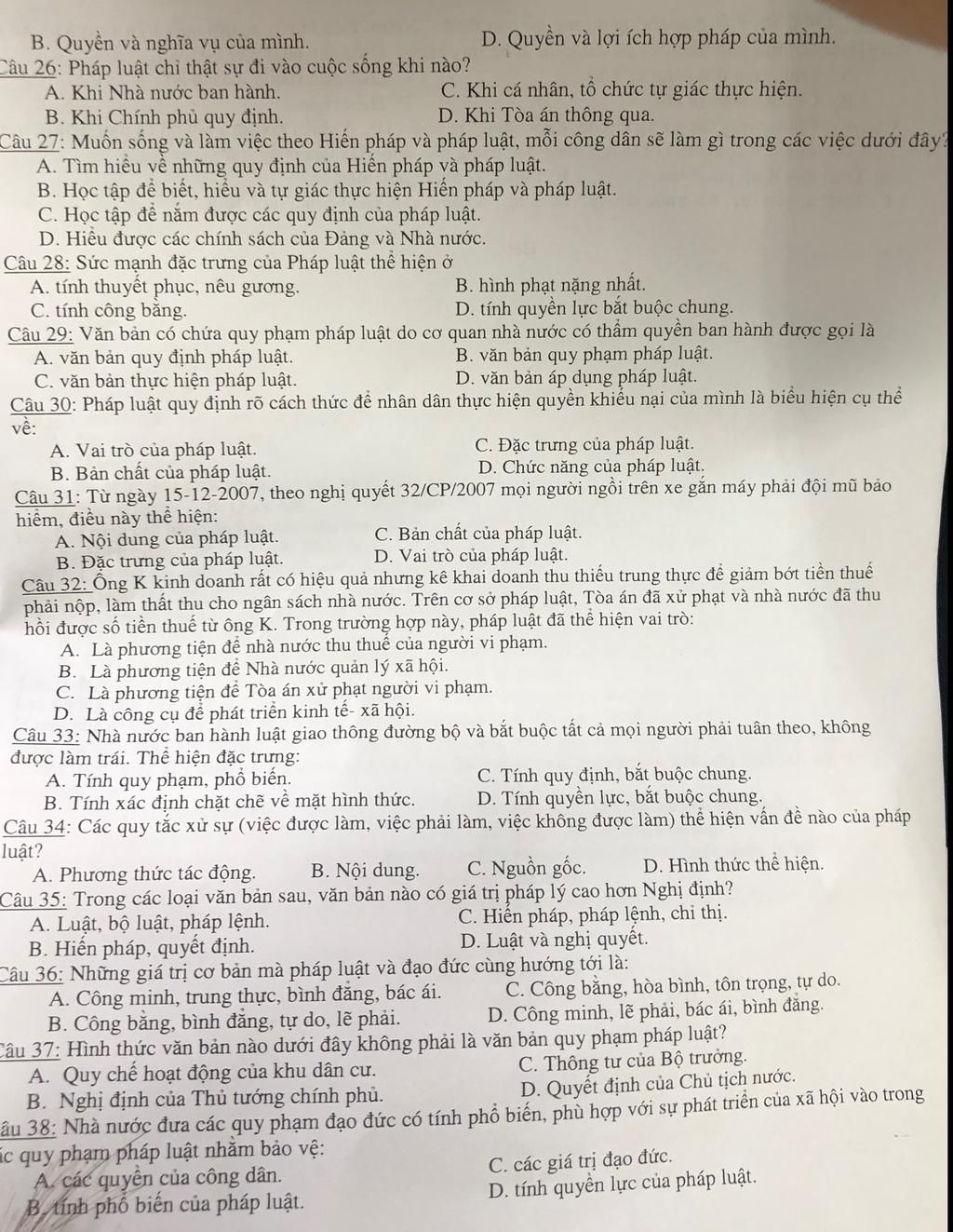 -> Từ ngày 15-12-2007, theo nghị quyết 32/CP/2007 mọi người ngồi trên xe gắn máy phải đội mũ bảo hiểm, điều này thể hiện đặc trưng của pháp luật