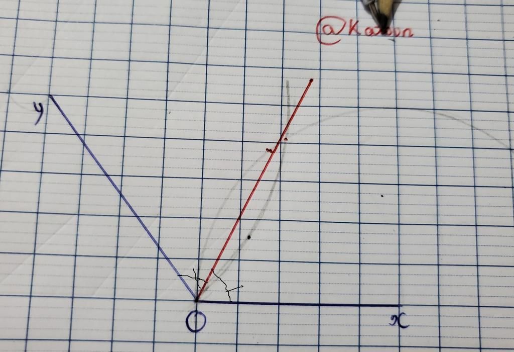 + Ta đặt 1 cây thước song song với Ox và 1 cây thước song song với Oy điểm giao nhau của 2 cây thước là điểm phân giác. Từ O ta vẽ đường thẳng tới điểm đó `=>` ta có tia phân giác.