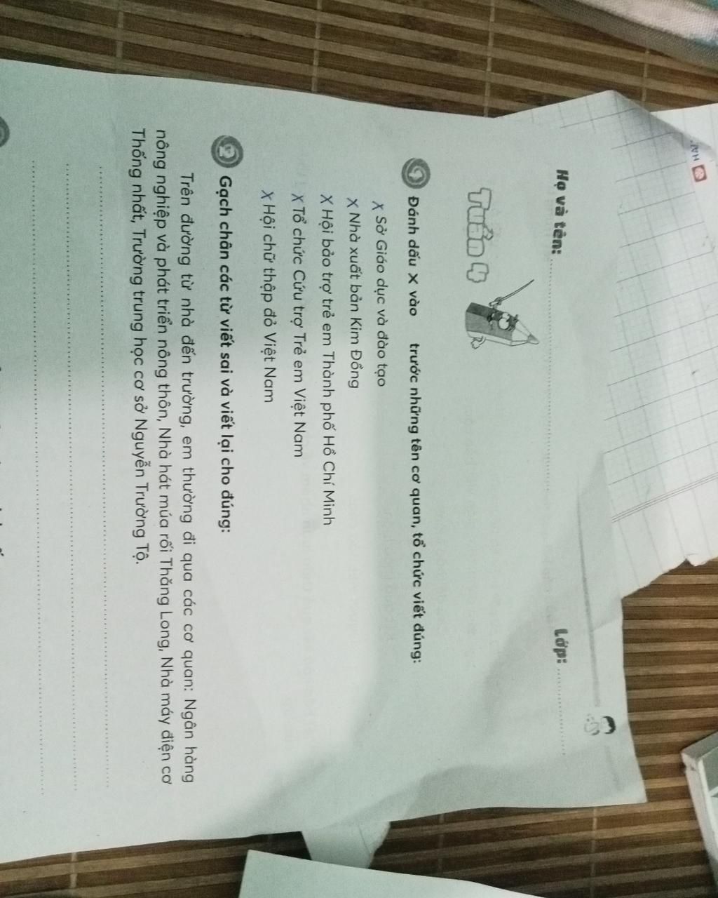 1.Đánh dấu X vào trước những tên cơ quan , tổ chức viết đúng .: