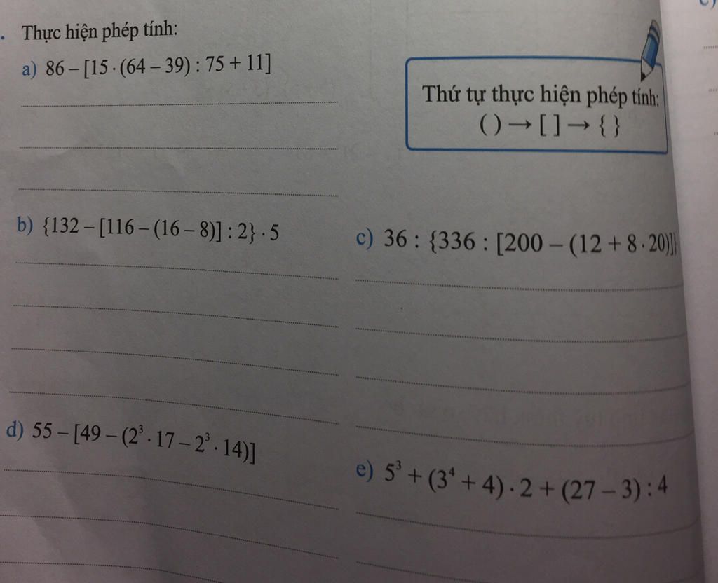 `= 5^3 + 85 . 2 + (27 - 3) : 4`
