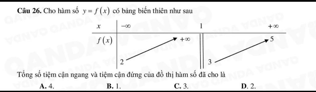 `->f(x)=5` là tiệm cận ngang