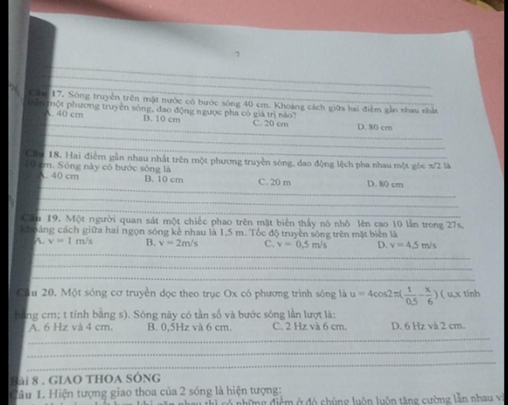 \(d = \dfrac{\lambda }{2} = \dfrac{{40}}{2} = 20\left( {cm} \right)\)