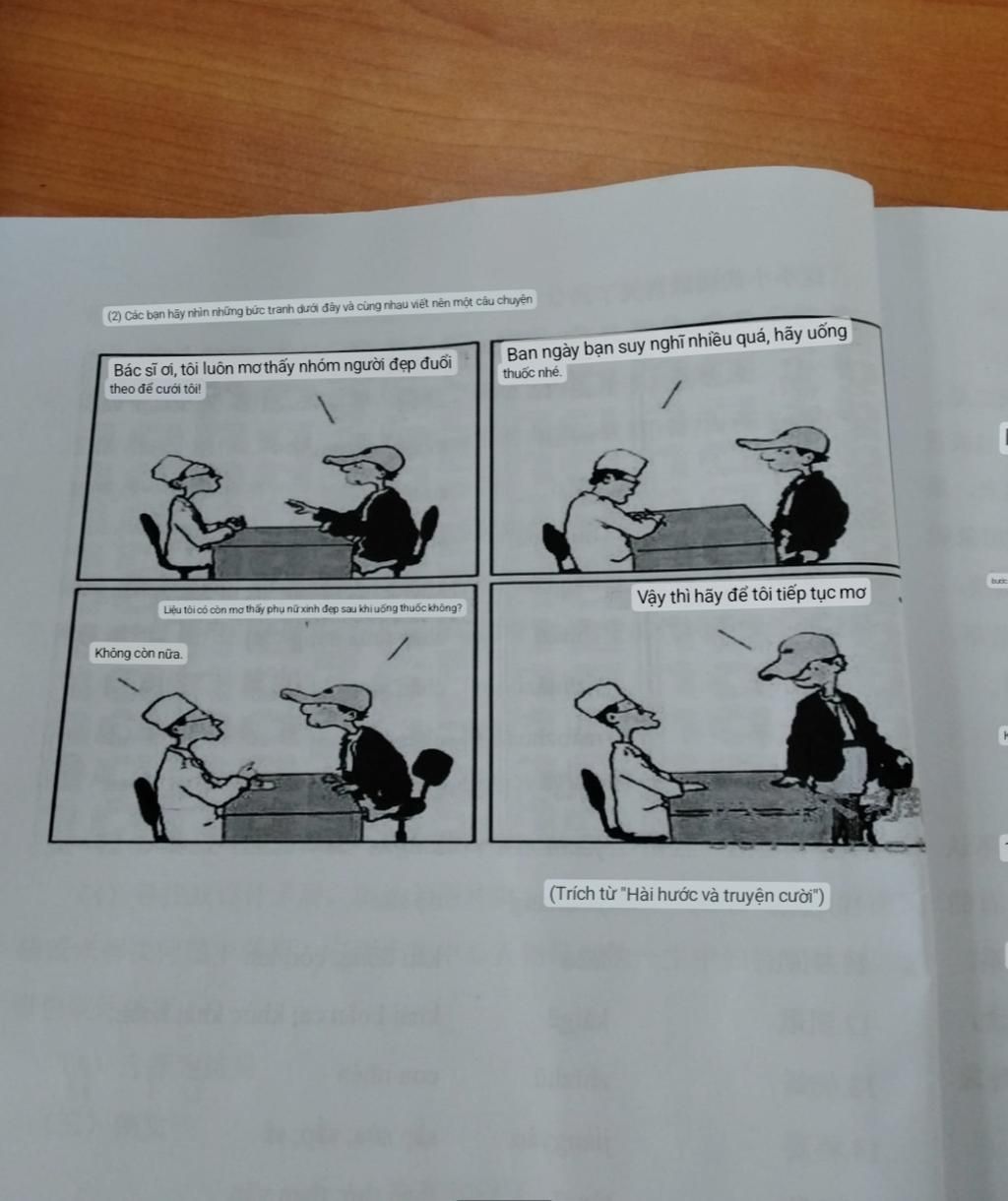 ngày nọ có một thanh niên háo sắc mơ đến nhiều người đẹp đuổi theo đòi cưới anh ấy thích thú k nghĩ đây là giấc mơ đang vui anh ta chợt tỉnh giấc vì tuần nay ngày nào cũng mơ điều đấy anh liền đến hỏi bác sĩ (như tranh bạn cho) sau khi nghe bác sĩ nói dù vẫn muốn mơ thứ khác nhưng anh vẫn muốn có các người đẹp nên từ chối uống thuốc
