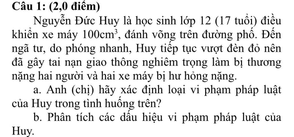 b)Phân tích:+Huy đã vi phạm điều khiển xe máy khi chưa đủ 18 tuổi.