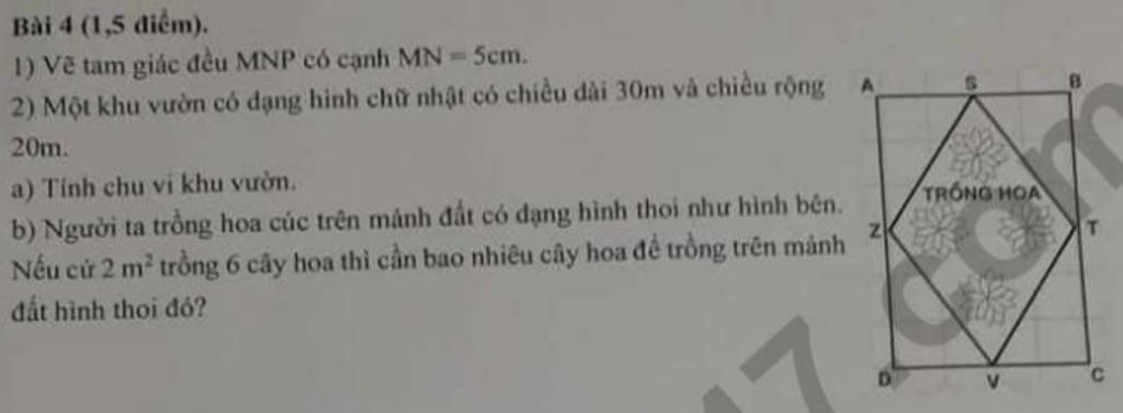 2) Một khu vườn có dạng hình chữ nhật có chiều dài 30m và chiều rộng