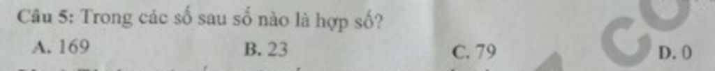 `A.169->` Là hợp số do có nhiều hơn `2` ước tự nhiên là `1;13` và `169`